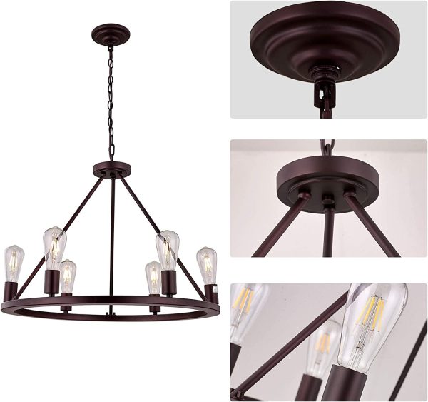 6-Light Industrial Famhouse Chandelier for Dining Room Light Fixtures Over Table Bedroom Kitchen and Foyer Oil Rubbed Bronze Foyer Black Farmhouse Rustic Chandelier